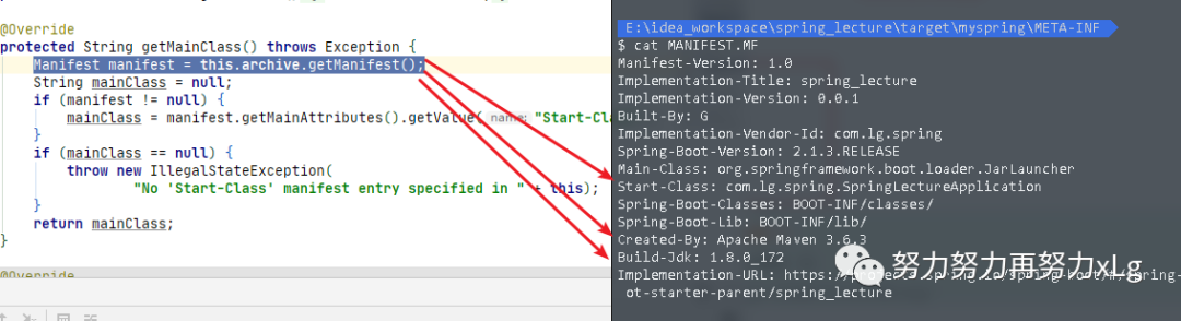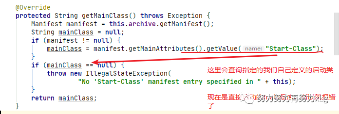 会获取,启动清单,可以看出这里就是获取用户定义的入口类文件Main-Class
