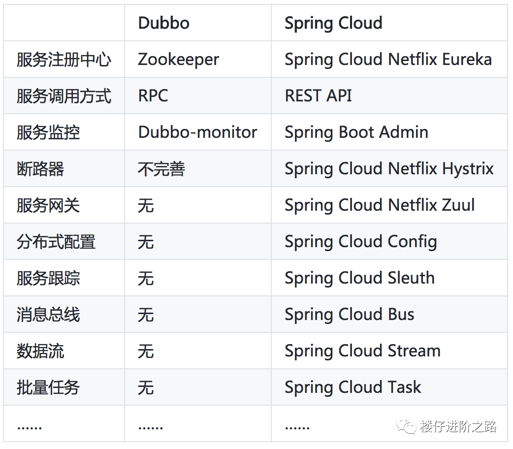 但凡事无绝对,每件事物有好的地方也有不好的地方,总的来说,Dubbo 和 Spring Cloud 的主要不同体现在两个方面:服务调用方式不同和专注点不同(生态不同)。