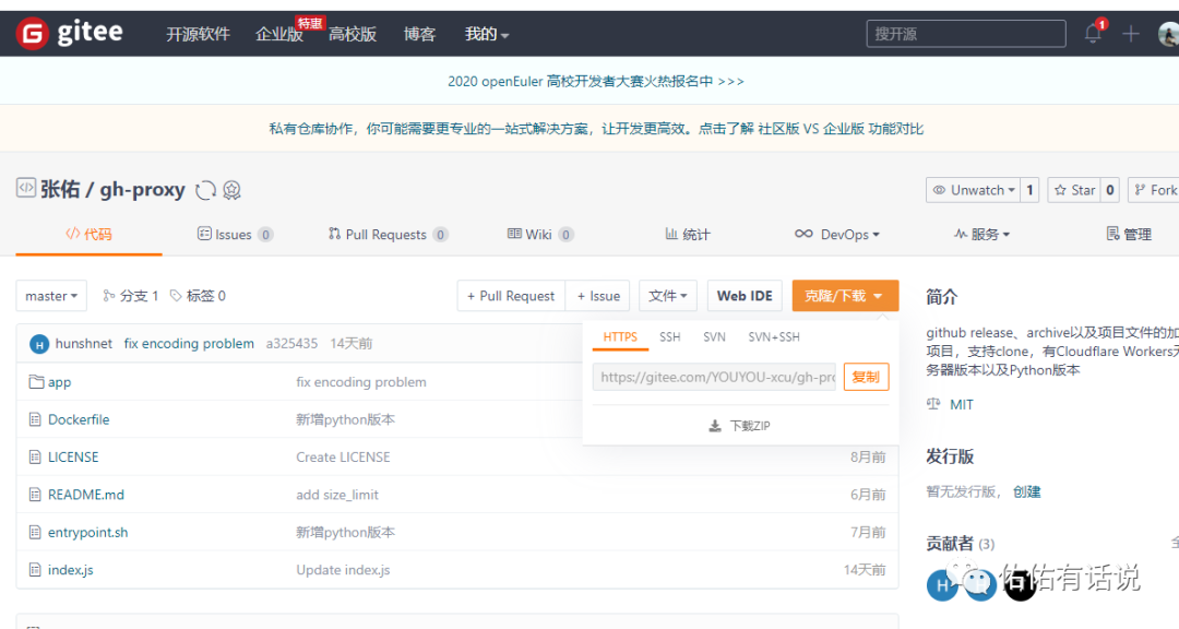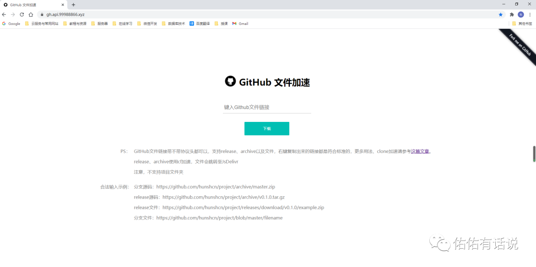 以上网站为演示站点,如无法打开可以查看开源项目:gh-proxy-GitHub(https://hunsh.net/archives/23/) 文件加速自行部署。佑佑有话说