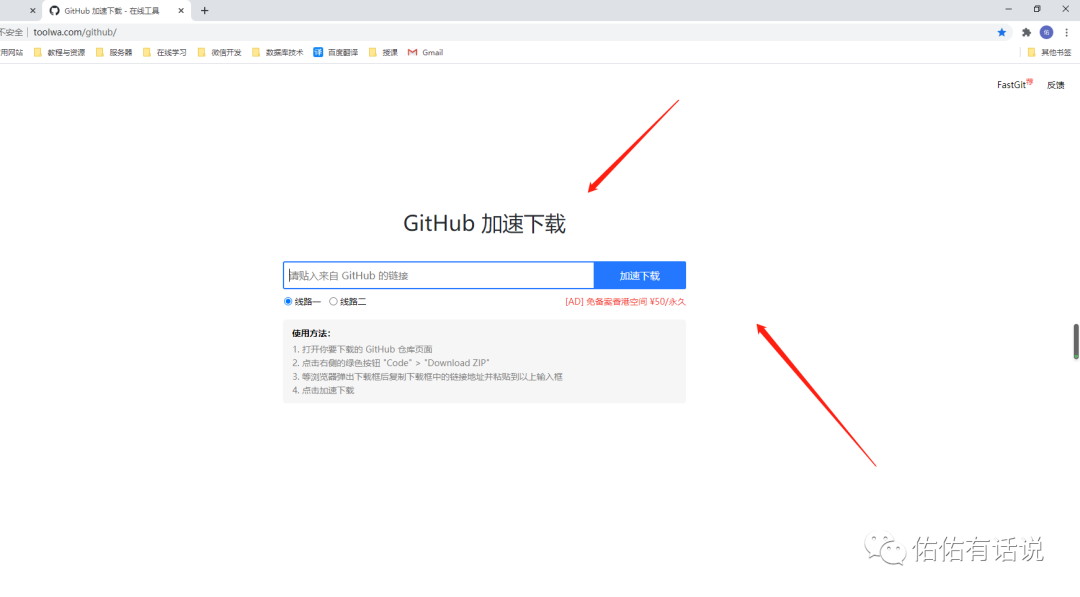 只需要复制当前 GitHub 地址粘贴到输入框中就可以代理加速下载!有话说