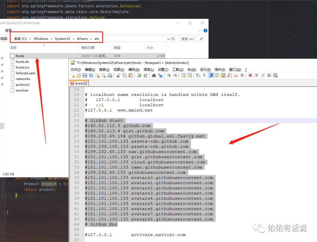 2、右键hosts->打开方式->选定记事本(我用的是notepad++)