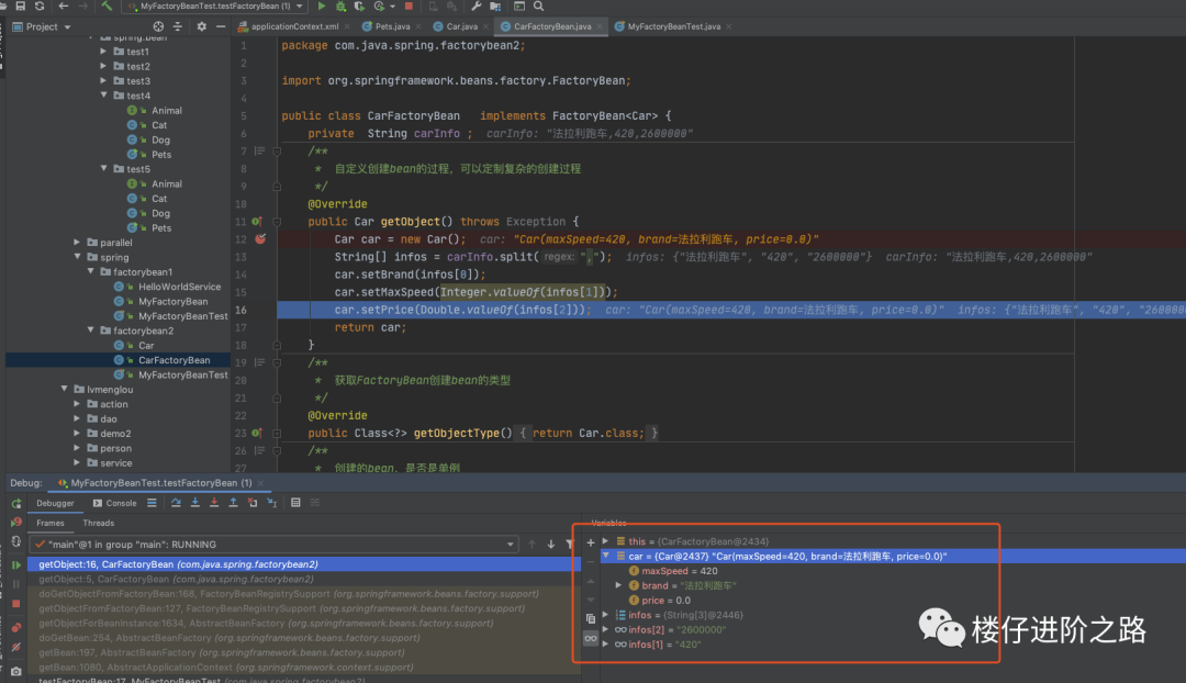 在定义一个CarFactoryBean,用来包装Car实例: