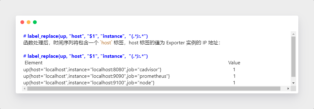 函数为时间序列添加额外的标签。label_replace