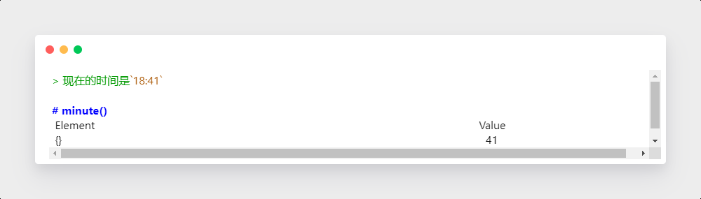 函数返回给定 UTC 时间当前小时的第多少分钟。结果范围:0~59。