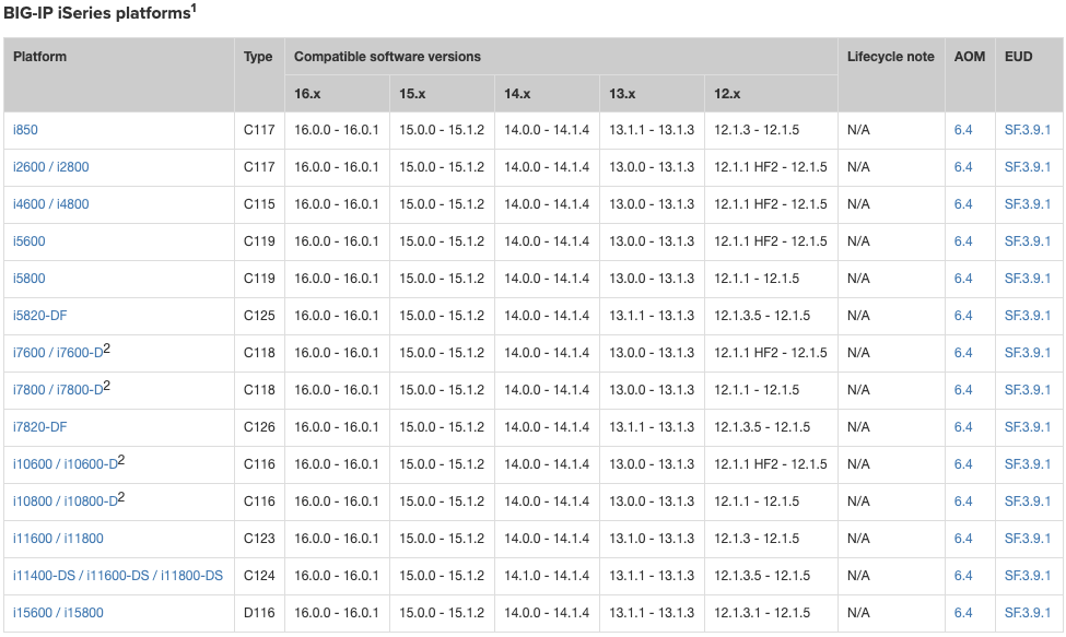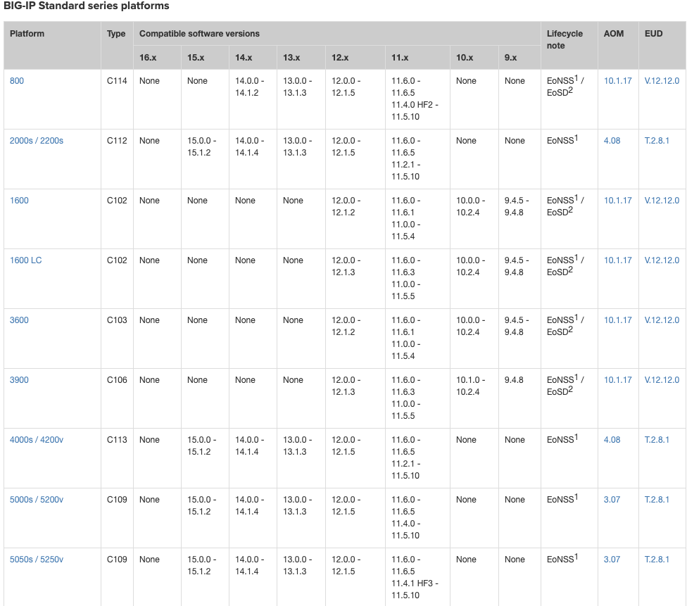 F5 Hardware/Software compatibility matrix