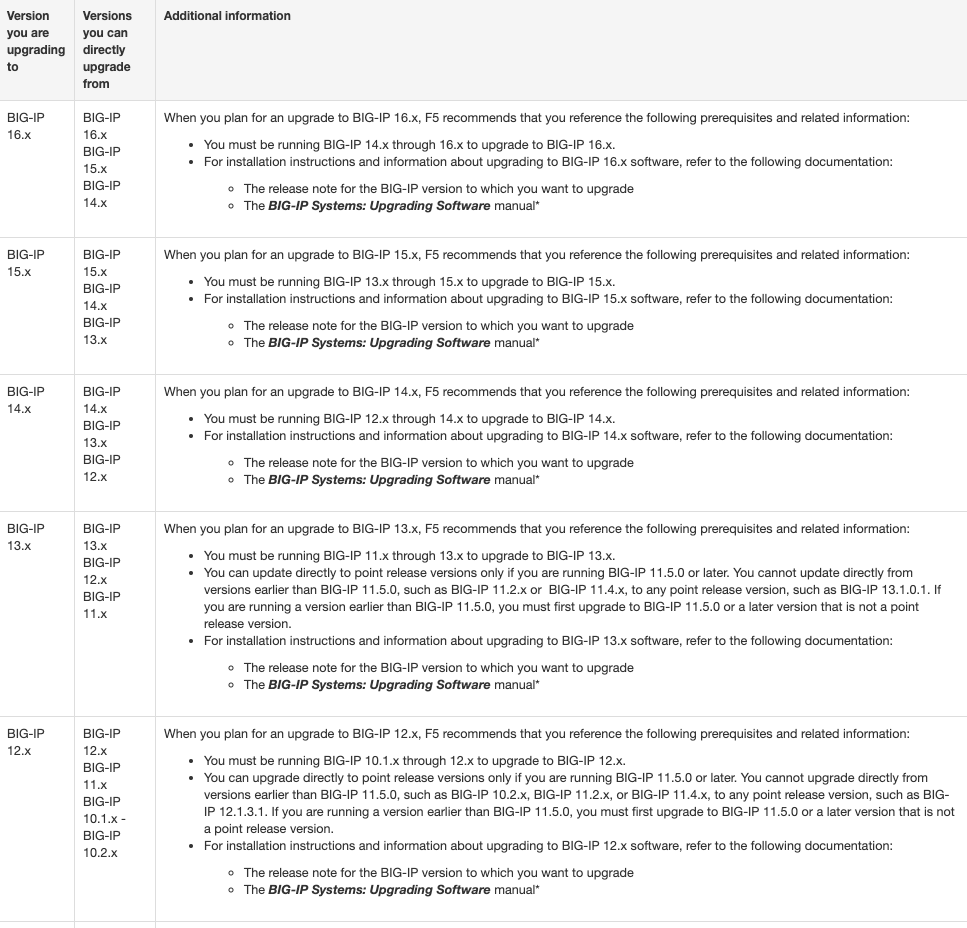 通过以上部分我们大概能够知道手头上的F5设备能升级到哪个可用版本,那么灵魂拷问来了,那我怎么从现有版本升级到目标版本呢?中间要不要进行滚动升级呢?