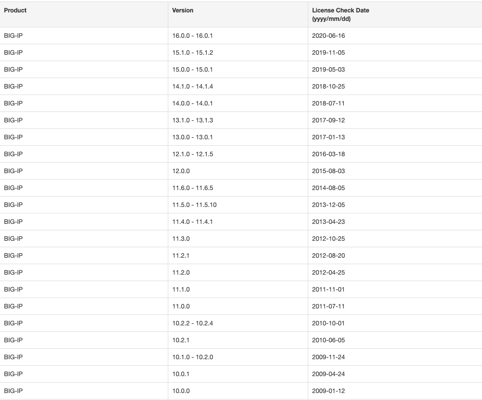 其实翻译的通俗一点讲就是,service check date这个时间是和你F5 授权(license)激活是有直接关系的(其实就是跟着你激活license时间走的),这里先剧透一下,开头不直接讲版本升级方式、步骤,而是专门开一个小章节讲这个service check date是因为这个时间很重要,因为这个时间直接决定了你的设备能不能升级?能升级到哪个版本?升级前要不要重新激活license?设备过保了还能不能升级?等等问题。