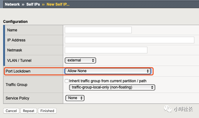 F5上关闭带内管理权限很简单,在F5 WEB界面下依次点击Network > selfips 点击相应的selfip Port Lockdown 选择 Allow None