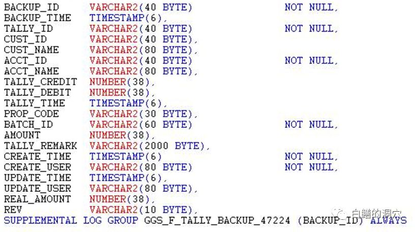 而目标端从从archive log中解析出来sql_redo的语句变成了,源语句中的ACCT_ID条件没有了,反而多了BACKUP_ID等条件: