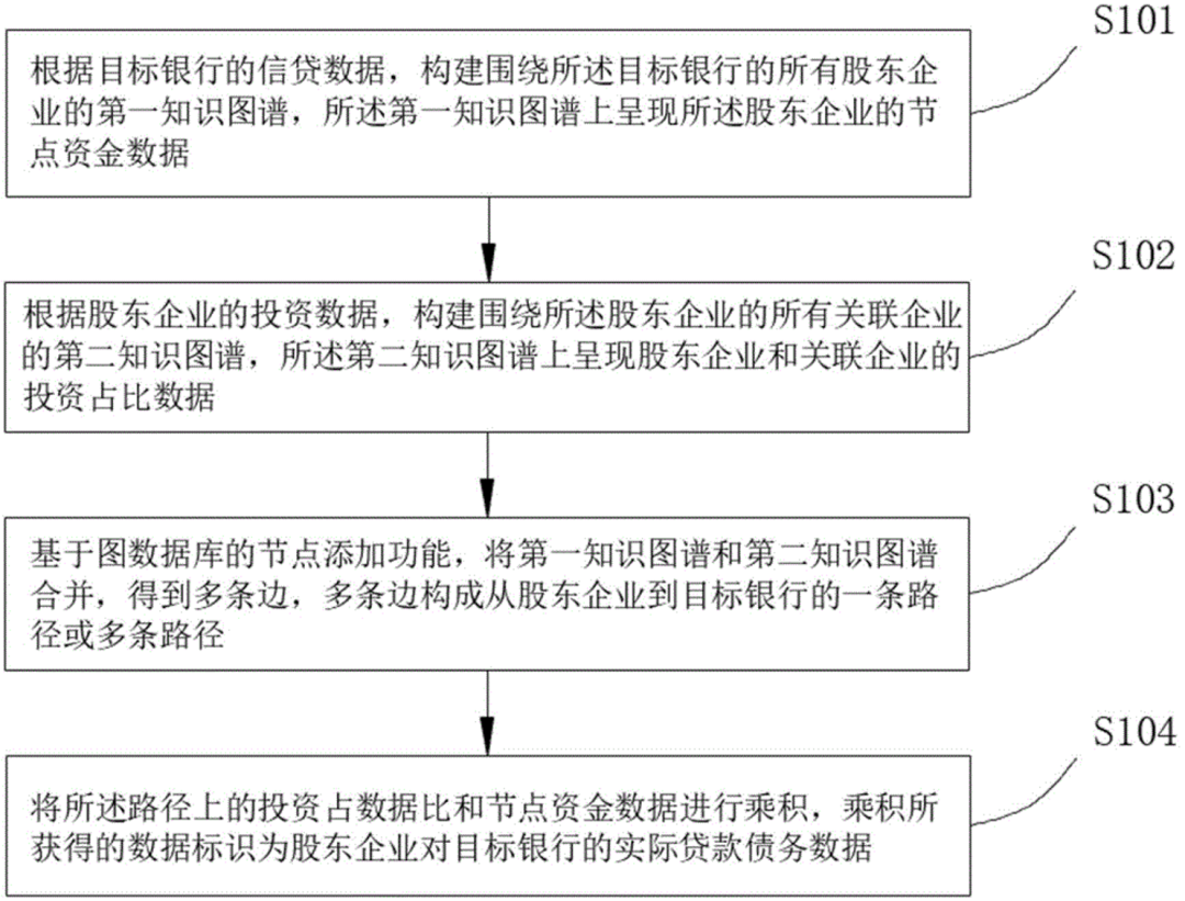 若股东企业到目标银行的路径只有一条边,则标识为是显性路径,该路径上只有节点资金数据,该节点资金数据标识为股东企业对目标银行的实际贷款债务数据。