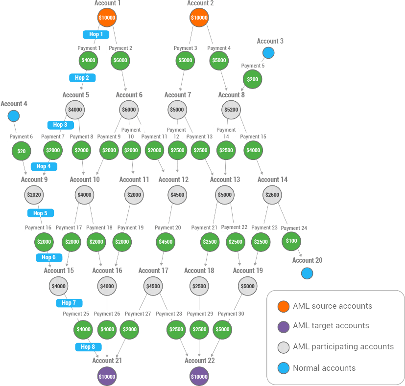 检测洗钱和金融欺诈需要超越个人账户行为,随着时间的推移分析账户组或实体之间的关系,通常结合来自第三方来源的信息。建立在关系数据库上的传统洗钱解决方案并非旨在应对这一挑战。
