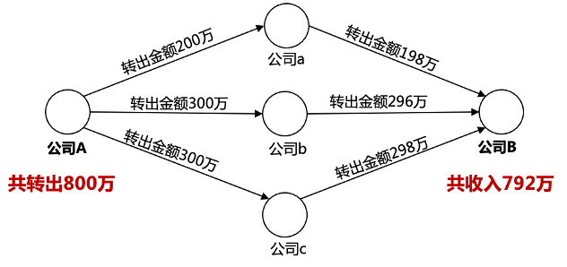 将交易过程中的每一个实体(银行或公司)作为节点、每一条交易流水作为两点之间的一条边,我们便能构建一张包含所有交易数据的关联图,其中的数据将被存储在图数据库中。