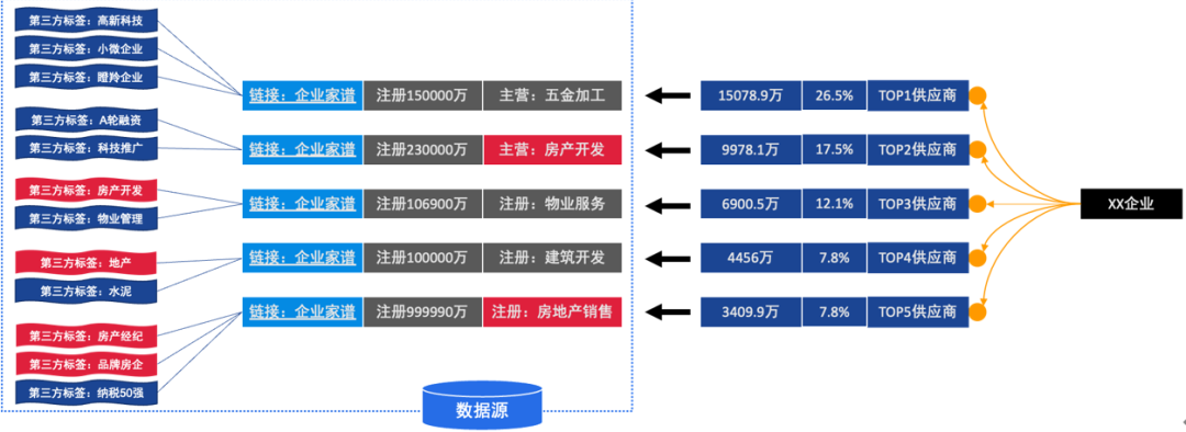 在另外一个案例中,我们可以看到某家机构利用图数据库存储交易数据、工商数据并在图上遍历所有资金流向(边),在资金链路上挑出涉房资金链路,标注后作预警提示(如下图所示),现已初见成效。