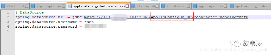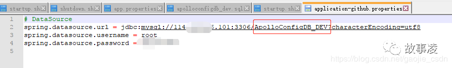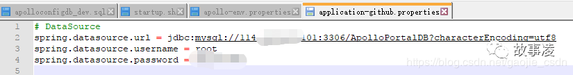 config/application-github.properties 配置apollo-config的数据库连接(此处是连接的dev环境的配置,因为我有多套环境的配置)