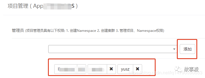 在项目配置页面点击项目管理进入管理页面,管理员具有权限(创建Namespace、创建集群、管理项目、Namespace权限)