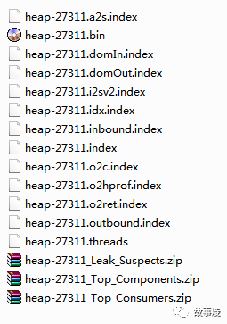 上图中 heap-27311.bin 文件是原始的Heap Dump文件,zip文件是生成的html形式的报告文件。