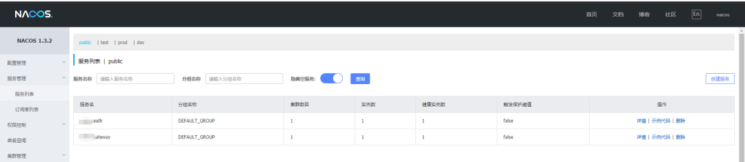 点击 服务管理/服务列表,即可看到已经注册的服务,如图