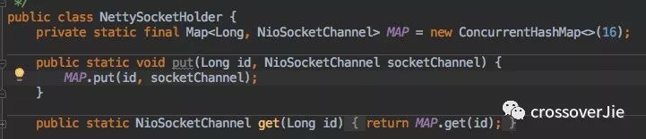 假设客户端的唯一标识是手机号码,那就需要把手机号码和当前的 Channel 维护到一个 Map 中。