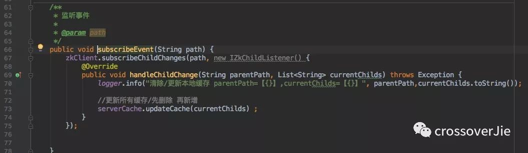 模块会订阅 Zookeeper 中的节点,从而可以获取最新的服务列表。结构如下: