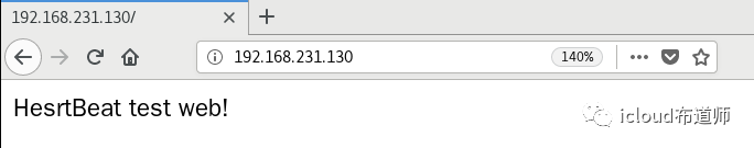 [root@Rserver2 ~]# yum install elinks -y //安装elinks[root@Rserver2 ~]# elinks 192.168.231.132 -dump //测试HesrtBeat test web!