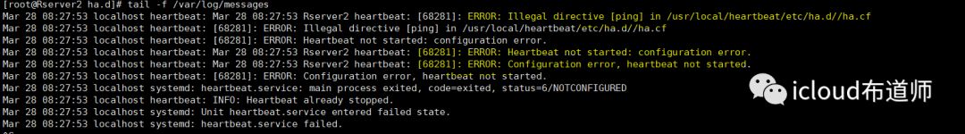 [root@Rserver1 log]# systemctl start heartbeat
