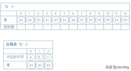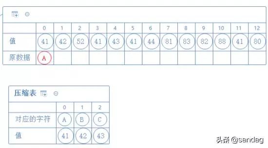同样的,一开始,压缩表里的数据为各个字符对应的十六进制值,这里不一一列出,具体可百度26个字母的十六进制。