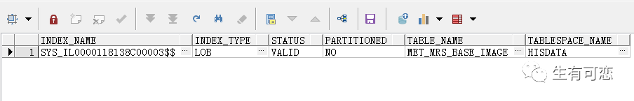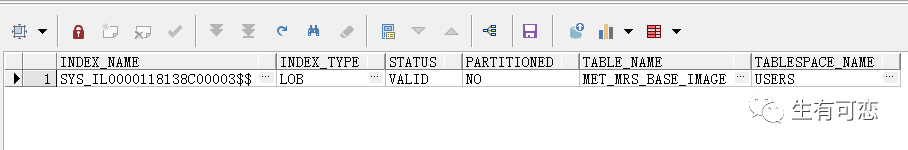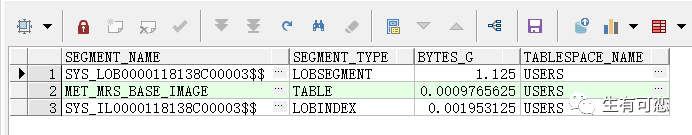 XYHIS.MET_MRS_BASE_IMAGE 这个表所使用的表空间是USERS表空间,有一个BLOB字段。我们再查一下LOB字段的信息。