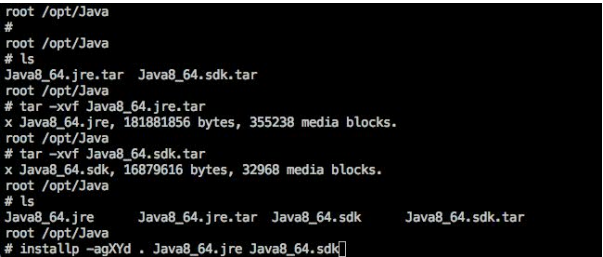 将上述两个文件解压,即可通过 smitty 或者 installp 命令进行安装: