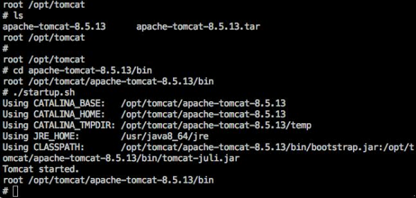 至此,Tomcat 安装工作已经完成。可通过直接运行启动命令进行验证: