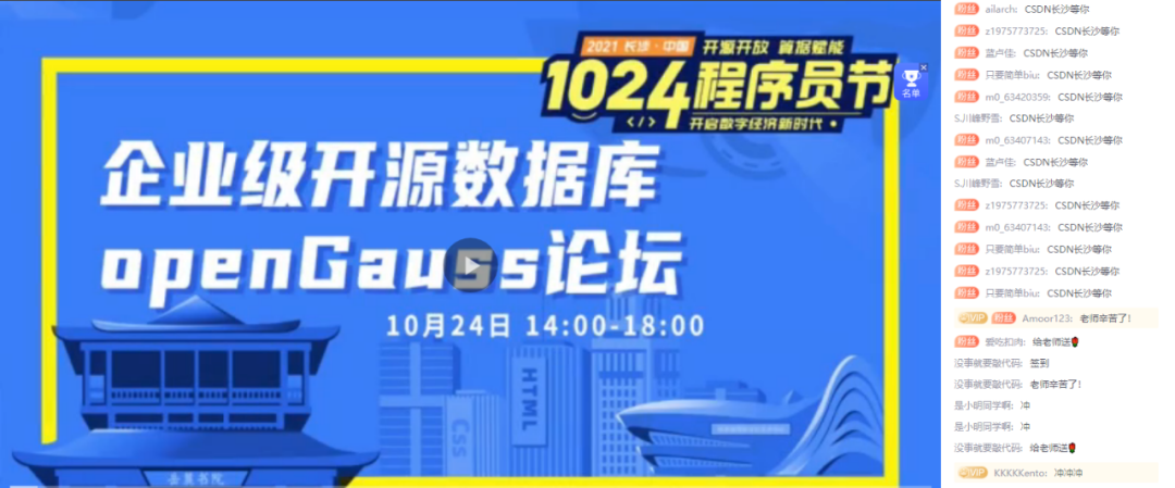因疫情缘故,原定线下的专场活动改为线上举行,但丝毫不减长沙的朋友们对openGauss的热情,openGauss专场在CSDN、openGauss B站、墨天轮平台同步直播,吸引了在线观看人数达4000+人次,虽然老师不在现场,但线上专场的直播也吸引了1024程序员节现场观众的围观与学习。