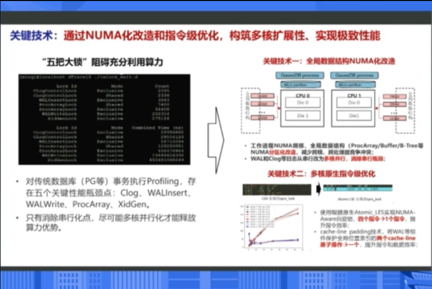 随后来自openGauss技术委员会委员 周平高从技术的角度剖析openGauss分享在内核性能领域上做的一些探索和实践。