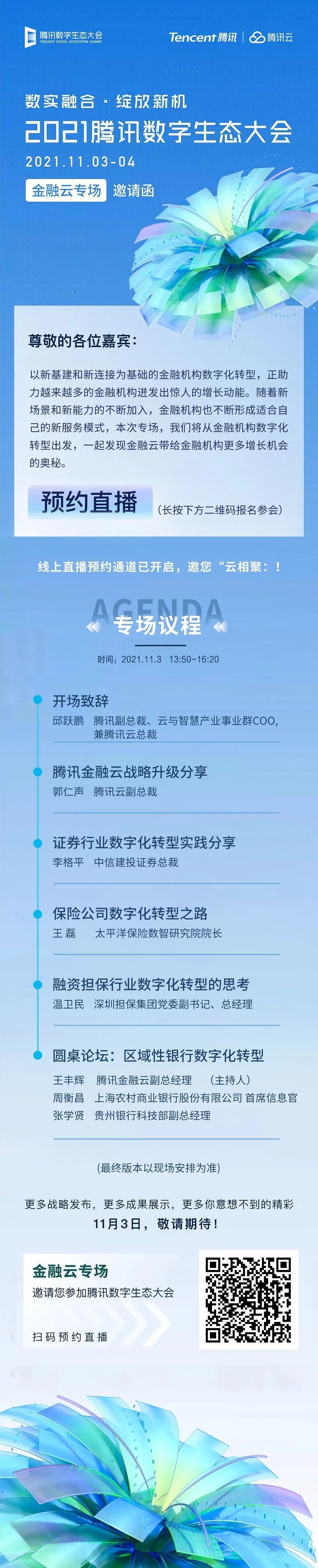11月3日!2021腾讯数字生态大会金融云专场云相聚!