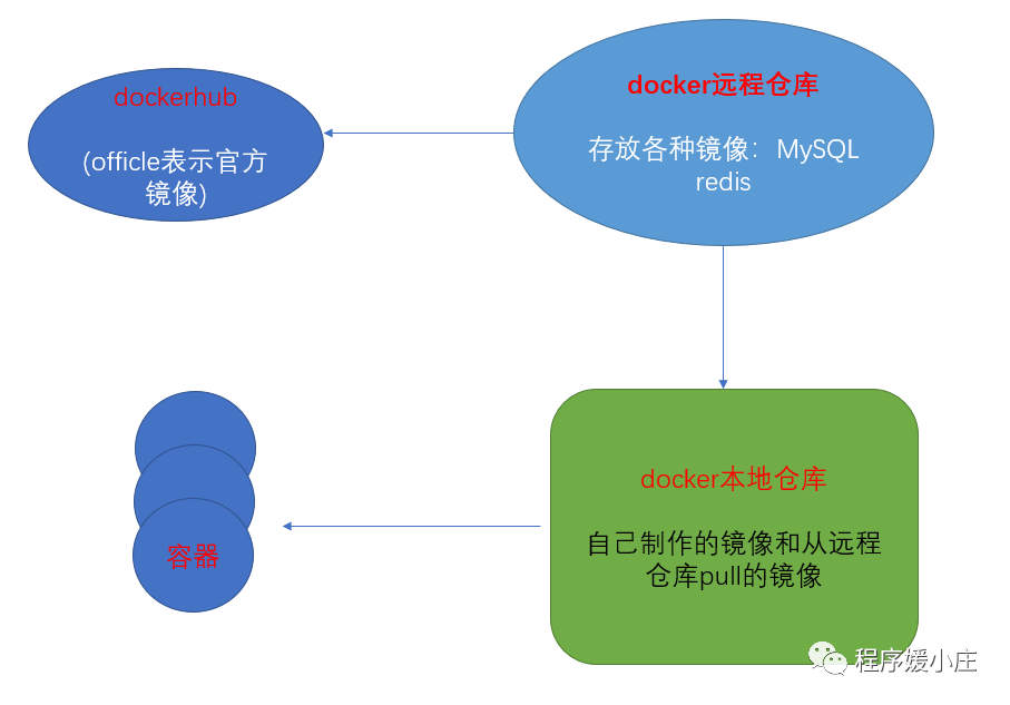 docker引擎上运行的是一个一个的容器,容器可以当做是一个一个运行的软件环境,比如运行的MySQL容器、redis容器等,容器又是从何而来的呢?运行一个个容器就需要镜像,简单来讲一个镜像就代表一个软件,比如MySQL镜像、redis镜像等,但是光有镜像不行,镜像再具体来讲就类似于软件的安装包,安装包要运行才能安装成功,因此镜像的特点是只读的。