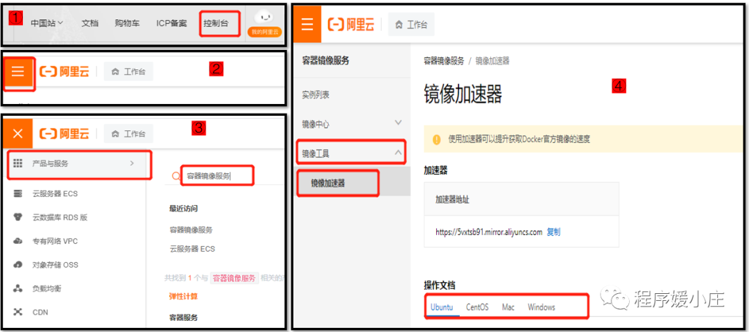 去远程仓库去pull镜像时,由于直接通过dockerhub下载很多时候会非常慢,因此为了pull时速度更快一些,国内大厂阿里大佬就在中国搞了一个全国范围的镜像仓库,该镜像仓库将远程镜像仓库全部复制过来,就可以通过设置docker镜像加速提高拉取镜像的速度。配置镜像加速步骤如下: