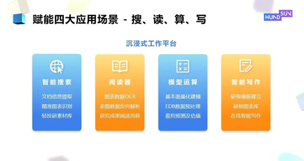 其中,洞见投研工作台是一款针对投研诉求的全栈式产品,由恒生电子旗下的子公司丹渥智能推出,解决传统投研资料零散、低效率、不统一等问题,致力于构筑一站式智能投研工作台,赋能“搜-读-算-写”四大业务场景,利用图像识别、NLP、知识图谱等AI技术,提供包括全域智能搜索投研资料、研报内容抽取、问答式搜索、万能阅读器、智能标签、模型运算、智能写作报告以及个性化监控订阅等多种功能,大幅提升投研效率,实现投研工作的沉浸式体验。