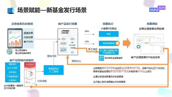 恒生电子财富中台规划负责人胡学进表示,银行、保险、证券不同行业在营销系统建设方法论及营销工具层面大同小异,但不同行业面临的营销场景确实存在很大差异。比如银行的零售营销体系已相对成熟,具备一定数字化能力,由于银行网点众多,会更关注如何利用好现有网点和线下营销人员,构建智慧型网点平衡,布局网格营销体系,注重前台人员的经验沉淀到总部进行集中赋能;保险销售的私域流量特征明显,代理人营销赋能及互联网渠道营销并重;证券当前更关注存量用户的持续经营,线上线下联动营销转型明显。我们在这些场景理解的基础上,引入了不同的技术,比如AI写作和智能审核、利用5G增强短信触达、采用idmapping技术做好用户识别等等。如果我们金融科技脱离了客户的场景,它只能是被称为昂贵的一些基础设施,并不能给企业带来真正的价值。