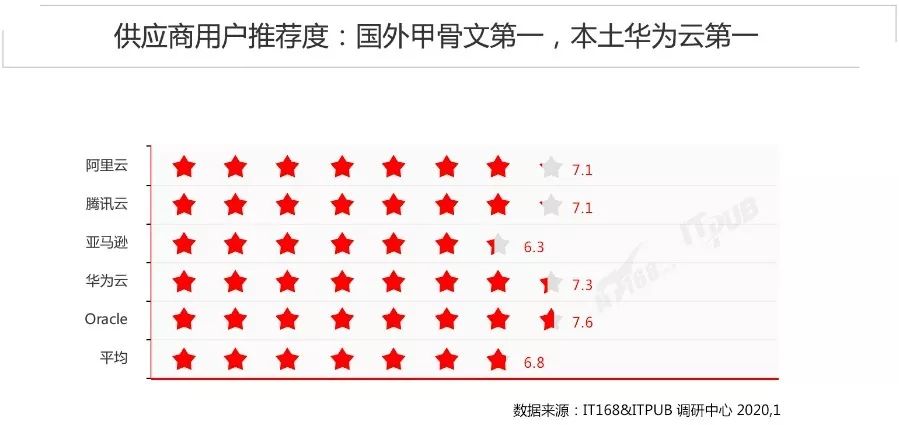 用户推荐度:甲骨文第一,本土供应商华为云第一;