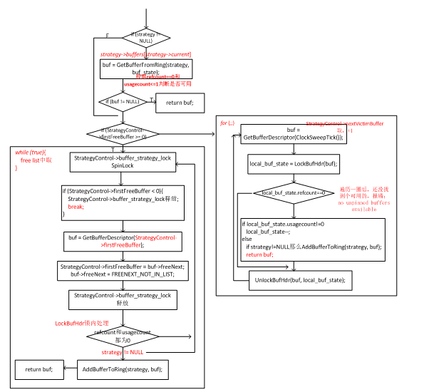 1)该buffer分配有4种情况:从hash表SharedBufHash中查找;从环形缓冲区查找;从free list查找以及驱逐策略进行分配。