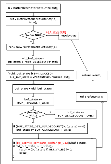 5)pin失败,通过StartBufferIO判断,返回TRUE,缓冲区无效,此时foundPtr为false,并返回对应buf;返回false,表示别人正在使用,直接返回对应buf。foundPtr表示是否在缓冲区命中