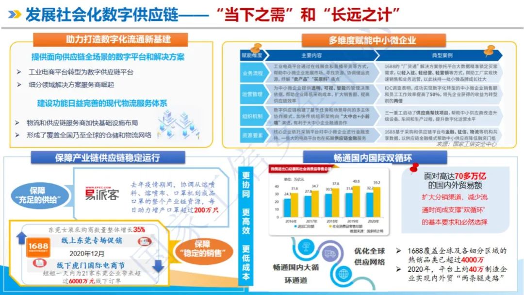 报告认为,加快社会化数字供应链发展,不仅是当前打造数字化流通新基建,赋能中小微企业“新基石”,更是关乎产业链供应链稳定和“双循环”大局的“先手棋”。