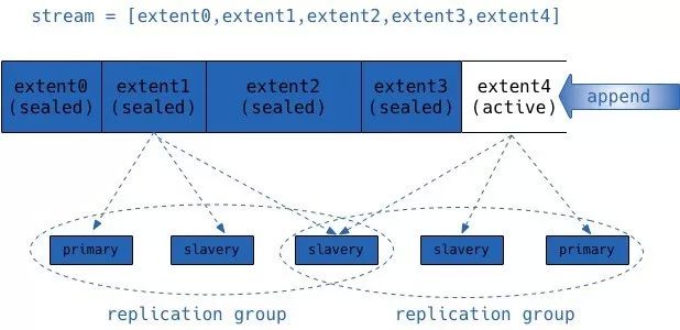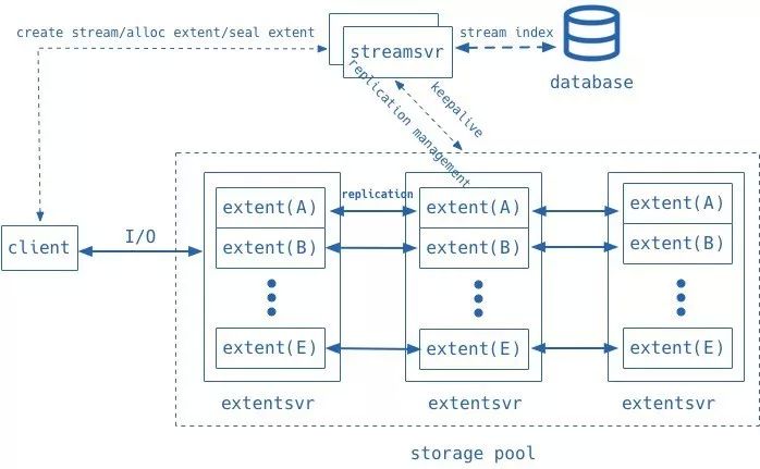 streamsvr:负责维护各个 stream 和 extent 之间的映射关系以及 extent 的副本位置等元数据,并且对数据调度、均衡等做管控。