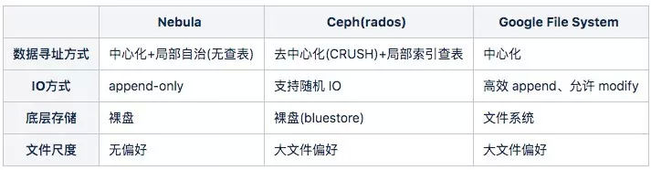 基于以上目标,我们将底层存储系统 Nebula 设计为基于 append-only 的存储系(immutable storage)。面向追加写的方式使得存储逻辑会更简单,在多副本数据的同步上可以有效降低数据一致性的容错复杂度。更关键的是,由于追加写本质上是一个 log-based 的记录方式,整个 IO 的历史记录都被保存,在此之上实现数据快照和数据回滚会很方便,在出现数据故障时,更容易做数据恢复操作。