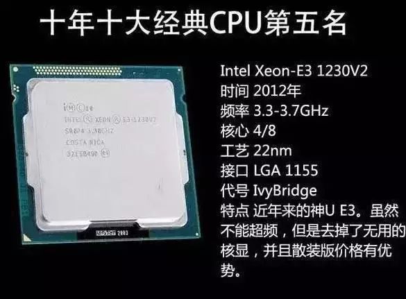 是的,这是本文选择的十个中央处理器中唯一不能超频的一个。这太不寻常了,它甚至不属于桌面产品的范畴。它来自英特尔服务器产品线,称为至强E3。从第二代酷睿开始,英特尔就屏蔽了普通处理器的超频功能。只有带K的高端型号才能超频。在超频低端产品后,它可以实现与高端型号相同的性能。这样的好事已经不存在了。此时此刻,玩家们发现了E3-1230的优势。没有核心显卡和四核八线程,这款E3-1230的性能可以与i7媲美。然而,由于大量批量版本的存在,价格仅低于带有K型号的i5。由于超线程技术的存在,这款E3-1230的性能超过了i5。由于无法超频,在与主板匹配时不必与高端Z系列纠缠,而是选择H或B系列主板,从而大大降低了整个平台的价格。与此同时,由于这一时期的中央处理器市场缺乏新的话题,E3基于话题的效应在网络时代爆发,具有超强的沟通能力,成为大多数玩家心目中的神U。
