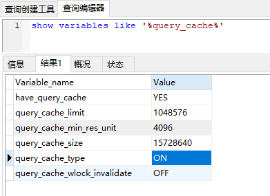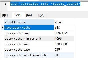 ①have_query_cache:当前的 MySQL 版本是否支持“查询缓存”功能。