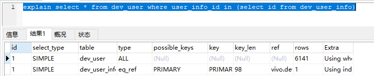 id:一般来说一个 select 一个唯一 id,如果是子查询,就有两个 select,id 是不一样的,但是凡事有例外,有些子查询的,他们 id 是一样的。