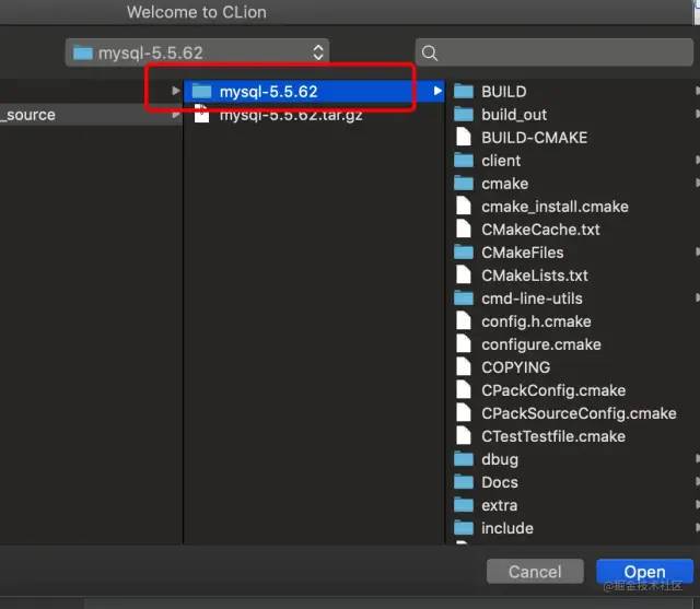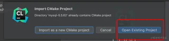 由于对于CLion 以及cmake 不熟悉,我在这一步犯错了。我们前面已经编译完 mysql 了,所以这儿不能再按照新项目导入,而是应该选择open Existing Project