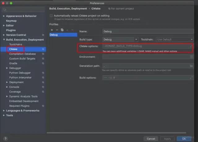 cmake . -DWITH_DEBUG=1 \