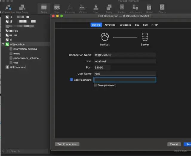 来看下navicate 视角, 图标已经亮了,也已经链接成功了。