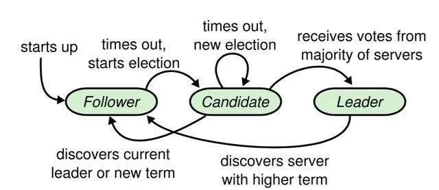 raft 协议中,各个节点有三种角色状态,Leader、Candidate 和 Follower.