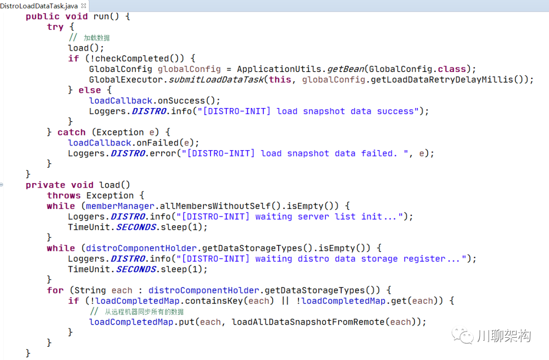 启动一个定时任务线程DistroLoadDataTask加载数据,调用load()方法加载数据